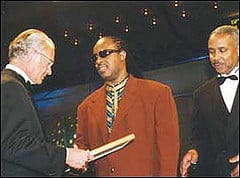 In December he was selected for the distinguished annual Kennedy Center Honours. At 49 he was the youngest person on which the honour has ever been bestowed upon. Chairman of the Center said, 'Stevie Wonder is a musical genius who has been an integral part of American music for four decades.' The ceremony was followed by a reception hosted at the White House by President Clinton.